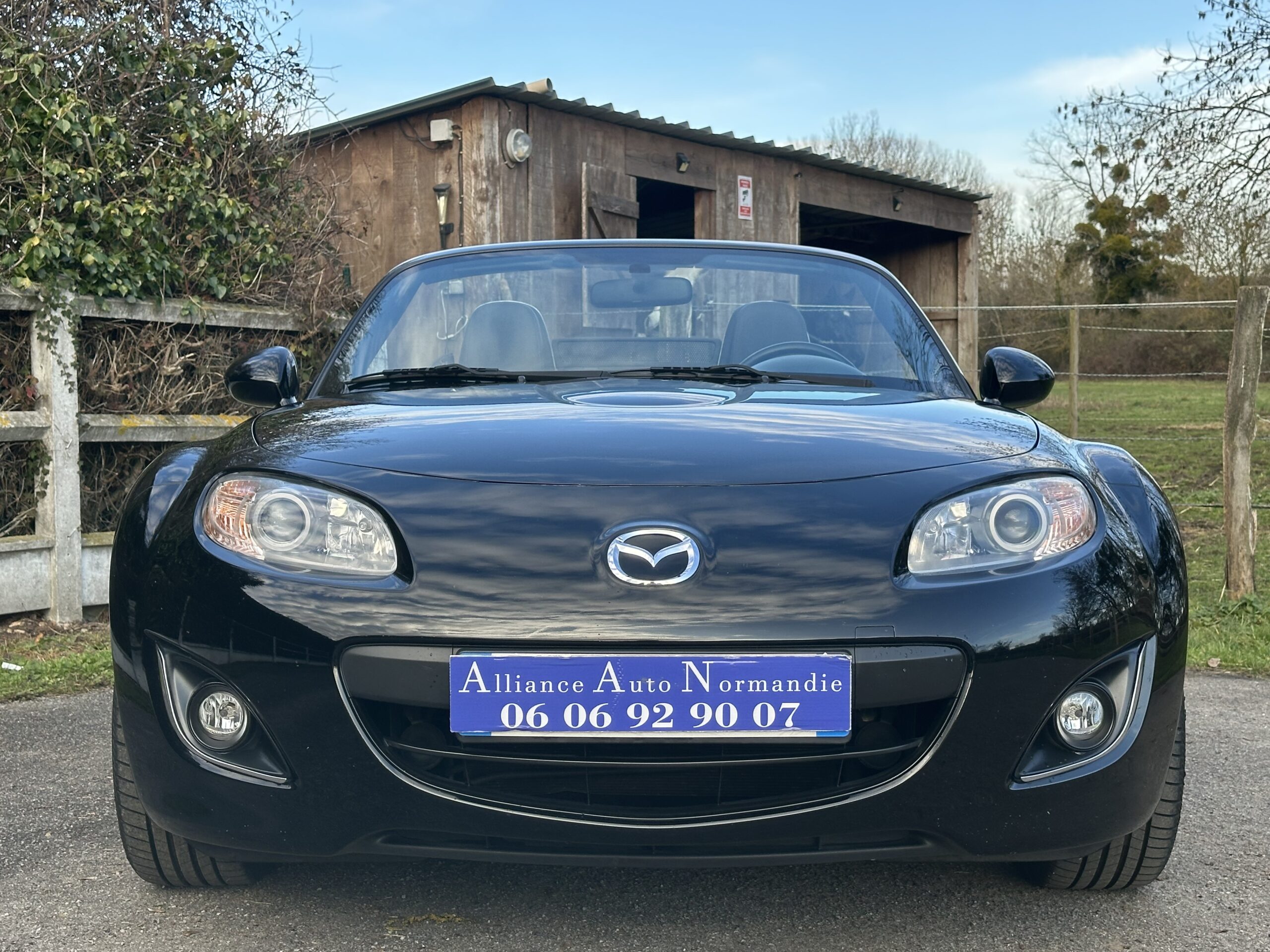 2011 – 76 800 km certifiés – Capote toile – NOIR MÉTALLISÉ / CUIR NOIR CHAUFFANT – Historique Mazda complet 2ème main crit'air